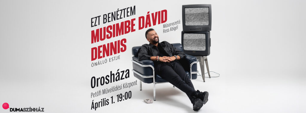 Április 1-jén 19 órakor Musimbe Dávid Dennis önálló estje „Ezt benéztem!” címmel Orosházán, a Petőfi Művelődési Központban!