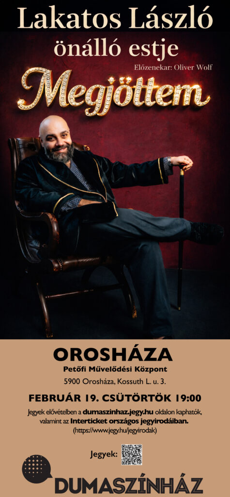 Február 19-én 19.00 órakor Lakatos László önálló estje „Megjöttem” címmel Orosházán, a Petőfi Művelődési Központban