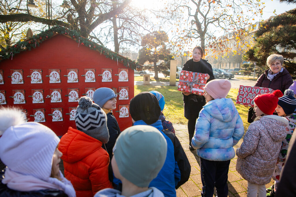 A főtéren felállított házikónál a város óvodáinak intézményi szinten biztosítottunk lehetőséget arra, hogy a naptárban ajándékra leljenek, ezzel téve örömtelivé több száz óvodás ünnepvárását.