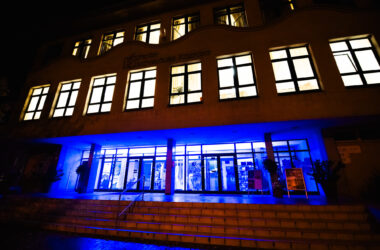 Kékbe öltözött valamennyi kollégánk november 20-án és a hagyományoknak megfelelően kék megvilágítást kapott intézményünk is, ezúttal már nem csak a főbejárat, az Árpád-kert felőli színháztermi előcsarnokunk is figyelemfelhívó színt öltött. Tovább