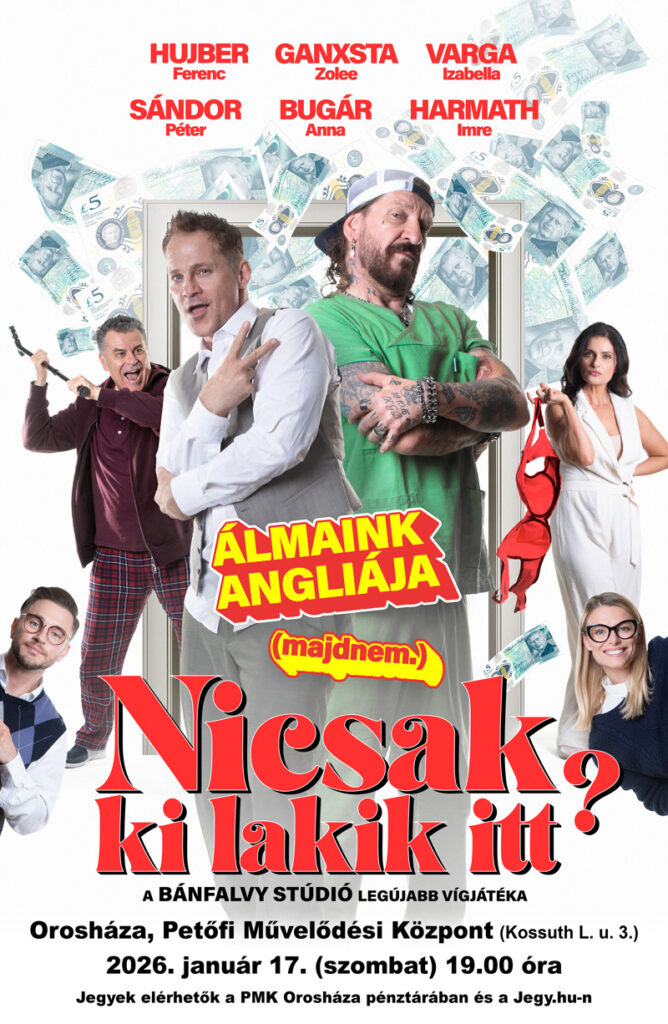Nicsak, ki lakik itt? A Bánfalvy Stúdió legújabb vígjátéka 2026. január 17-én, este hét órától Orosházán, a Petőfi Művelődési Központban.